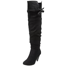 The stars will shine on you when you hit the streets in these killer boots! The Starlet over the knee boot from Not Rated features an easy pull on construction with a split collar a man made upper with a ruched shaft and charming tied details at the calf. The shaft measures approximately 22 1/4" in height 15 1/4" calf circumference and a 3" stacked heel. Style # NRW1014.[]