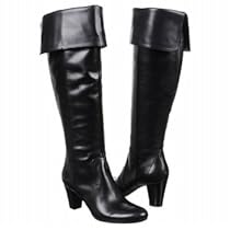 - Suede or leather upper in a foldover knee-high dress boot style with a round toe